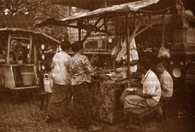 rujak, poisonous-looking iced syrups, steamed sweetmeats, beans, sticky